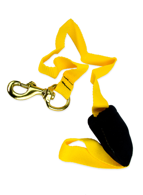 Die 1,2 m lange Leine besteht aus hochfestem 25 mm leuchtendgelben Gurtband und hat eine Schlaufe auf der einen Seite zur Befestigung am Handgelenk oder an einem D-Ring und eine Messingkarabiner an der anderen um sich mit Ihrem Buddy oder der Shotline zu verbinden. Sie kann auch an einer zweiten Buddy-Leine befestigt werden, um den möglichen Abstand zwischen den Tauchern zu verdoppeln, wenn dies bevorzugt wird. Die Leine lässt sich einfach in ihrer kleinen Neoprentasche verstauen und mit einem Karabiner sichern, von dem sie einfach ausgelassen werden kann .