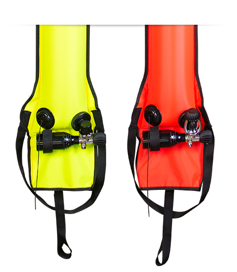 Befestigen Sie einfach eine Schnur oder ein Reel und Sie haben eine hervorragende Dekoboje. Oder sie kann am Beginn des Tauchgangs aufgeblasen werden und als eine Standard-Oberflächenmarkierung mitgeführt werden. Die SMBC wird durch Zug an der Leine aufrecht gehalten und markiert deutlich die Position des Tauchers.
