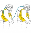 - Primäre Auftriebsgas-Versorgung eingespeist über einen Swagelok-Schnellkupplungs- 'cross connect'-Schlauch vom Seitenblock des Helms