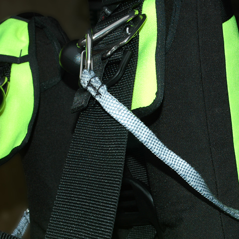 - Doppelspanngurtsystem für ein Bailout-Doppelpack auf dem Rücken des Tauchers