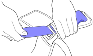 Fädeln Sie einfach den 50 mm Gurt aus der hinter den Klettverschlussklappen an den Schultergurten verdeckten Befestigung aus und verstellen die Länge der Schultergurte so, dass die optimale Positionierung der Verschlussschnallen erreicht wird.