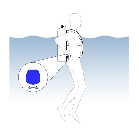 - Eine optionale Notfallflasche – 232 bar INT/DIN oder 300 bar DIN – bietet Optionen zur Notfallatmung in Verbindung mit einem der obigen Notatem-Optionen und einer potentiell lebensrettenden Reserve für Notfall-Auftrieb an der Oberfläche.