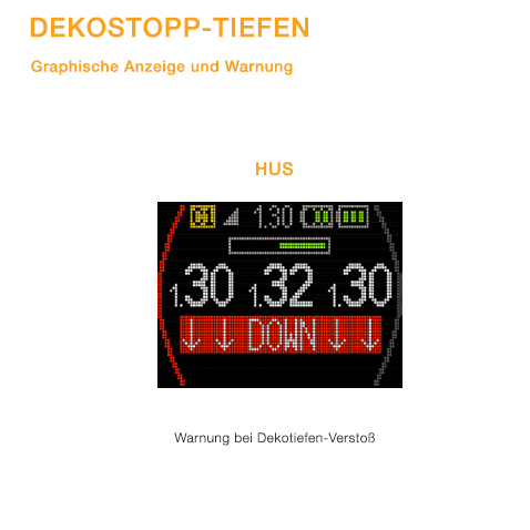 - Wenn die gegen Dekotiefe verstoßen wird, wird die normale 'DOWN'-Warnung angezeigt