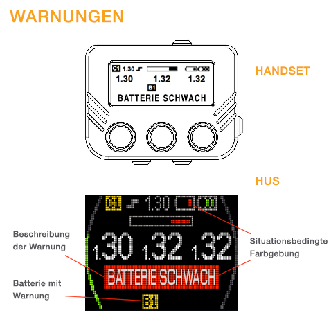 - Der HUS zeigt ebenfalls an, welcher Controller oder welche Batterie die Warnung erzeugt