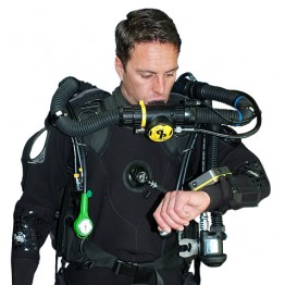 It offers hands-free monitoring of the rebreather in-line-of-sight throughout the dive. The full colour display conveys all the key information clearly with conditional colouring to highlight status changes and warnings