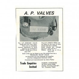 Both the AP Valve and the AP Direct Feed were sold originally to fit other manufacturers' 'horse collar' style ABLJs (Adjustable Buoyancy Life Jackets). The Parkers supplement their business by opening a dive-shop with air-filling and cylinder test station. Visiting divers only recognise the hidden store by the "Divers Down" signal 'A' flag (if not the 'P' flag) painted at either end of the Parker Hardware shop-front