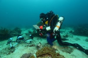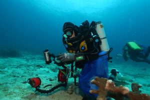 A large range of ecosystems were visited (aquatic and terrestrial, above the surface and underground, from high altitudes to deep waters, marine and continental) to study the interactions between geodynamics and biological evolution. Divers explored, with closed circuit rebreather or classical open circuit, the underground part of karst (caving dive) and the marine coast (bay, reef slopes…). There were no scientific data or study on these regions before Lengguru expedition. Many marine groups were studied (hard corals, gorgonian, echinoderms, molluscs, algae and seagrass…) with taxonomic, morphologic and functional approaches.