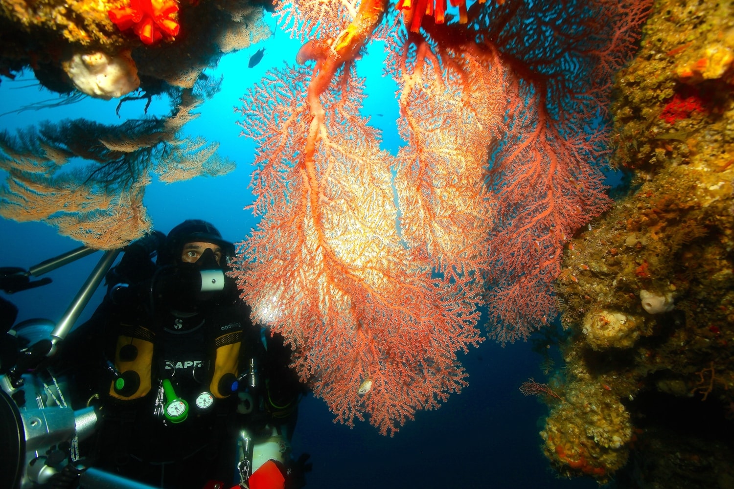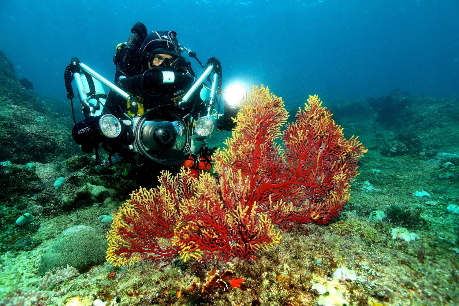A large range of ecosystems were visited (aquatic and terrestrial, above the surface and underground, from high altitudes to deep waters, marine and continental) to study the interactions between geodynamics and biological evolution. Divers explored, with closed circuit rebreather or classical open circuit, the underground part of karst (caving dive) and the marine coast (bay, reef slopes…). There were no scientific data or study on these regions before Lengguru expedition. Many marine groups were studied (hard corals, gorgonian, echinoderms, molluscs, algae and seagrass…) with taxonomic, morphologic and functional approaches.