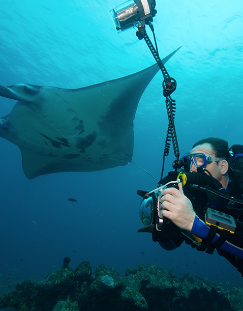 As an underwater cameraman… the basic reasons that I switched from heavy dual tanks to a nice light rebreather unit like [the Inspiration evo] are… simplicity, quietness… I can stay down longer… It gives me 100% humidified gas… It is just wonderful for gas consumption… there’s no up and down movement when I breathe… and small animals in the ocean totally ignore me… like I’m one of the rocks!