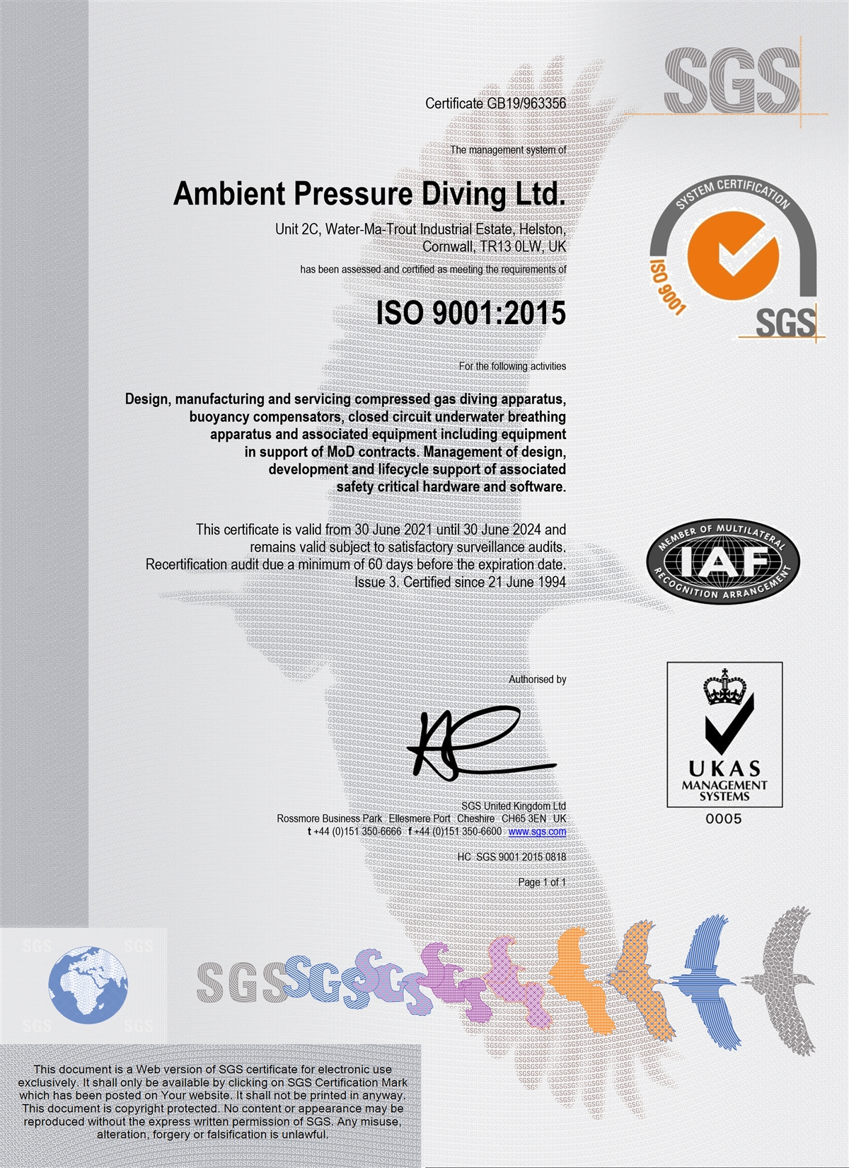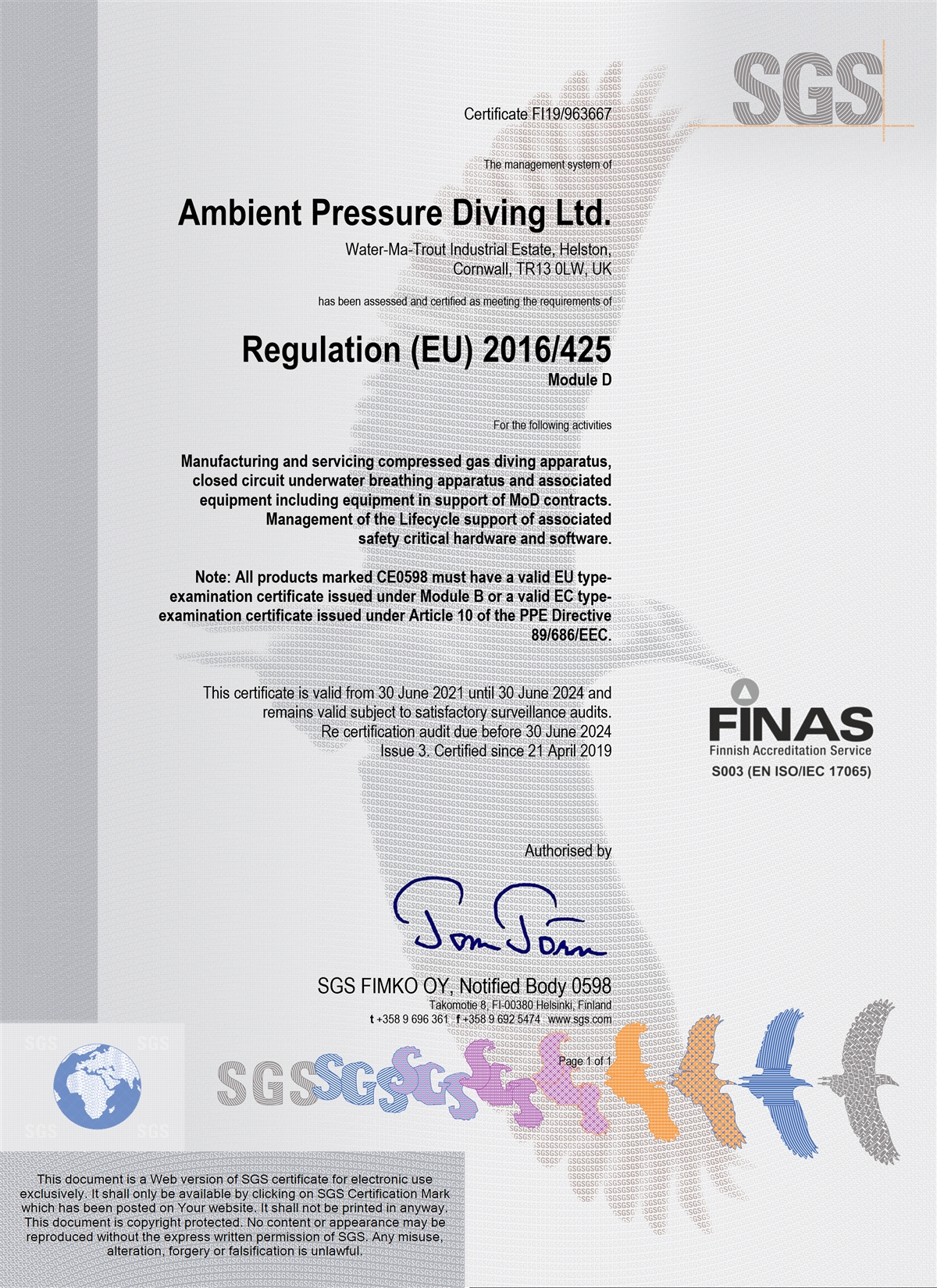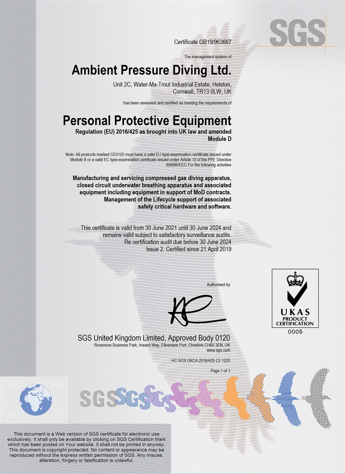 | UK PPE Module D Certificate | 30th June 2021 - 30th June 2024 | Download |