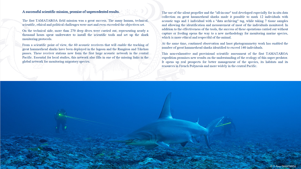 Dubbed TAMATAROA 1 – the programme was designed to study and conserve the great hammerhead shark in French Polynesia. It ran from December 2022 to March 2023.
