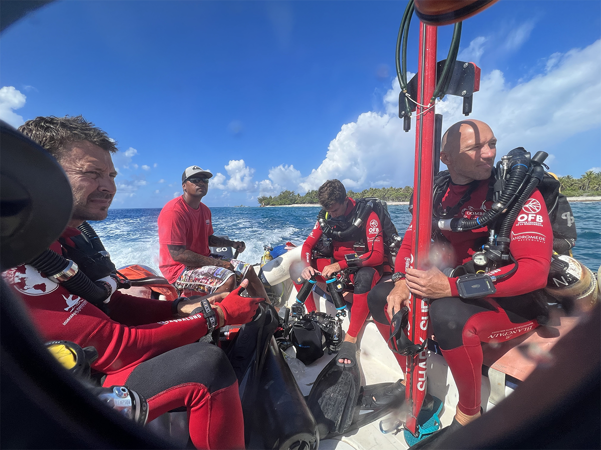 Martin Parker (AP Diving) with Laurent Ballesta (centre) and the TAMATAROA 1 team