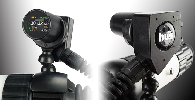 Le HUS est un affichage secondaire situé dans le champ de vision du plongeur et permettant de contrôler en temps réel le statut du recycleur et les paramètres de décompression.