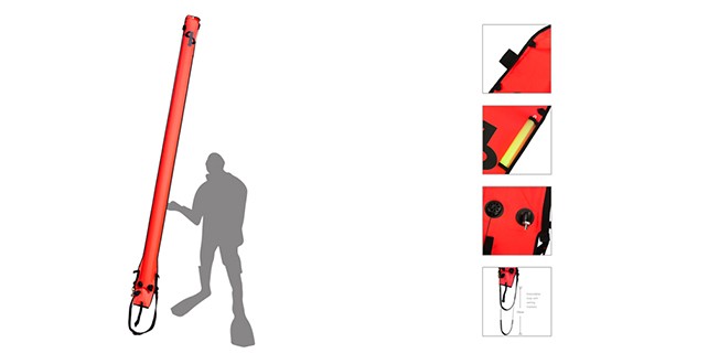 Le parachute de palier de 3m AP, auto-obturant et équipé de l’inflateur easifil, apporte une visibilité supplémentaire en pleine mer et est fourni avec de nombreuses caractéristiques supplémentaires.