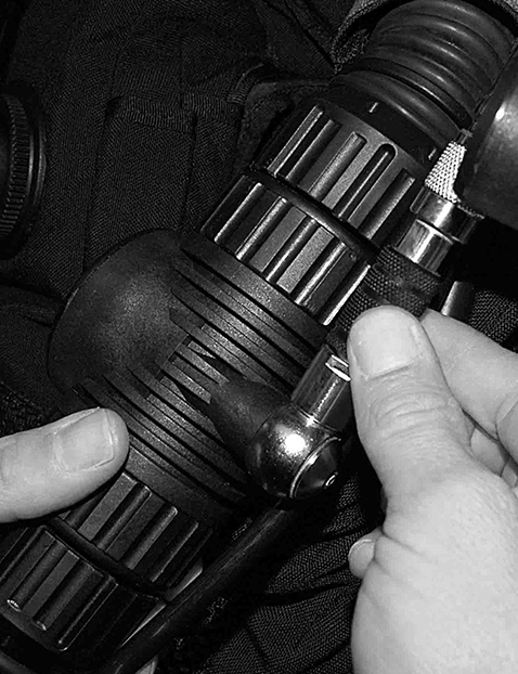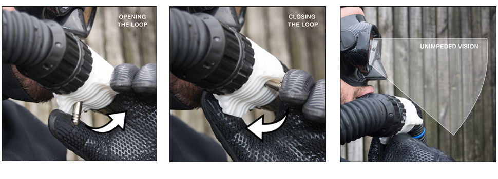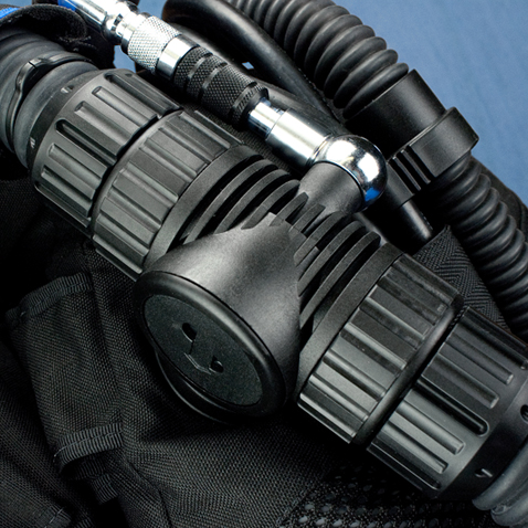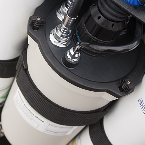 Ceci vous permet d'alimenter le recycleur à partir de différentes sources de diluant et de permuter ces sources durant la plongée en fonction des besoins. Les raccords mâles et femelles sont tous étanches une fois déconnectés. Ce système de connexion des gaz (CGS) est idéal pour se séparer des bouteilles externes à l'issue de la plongée.