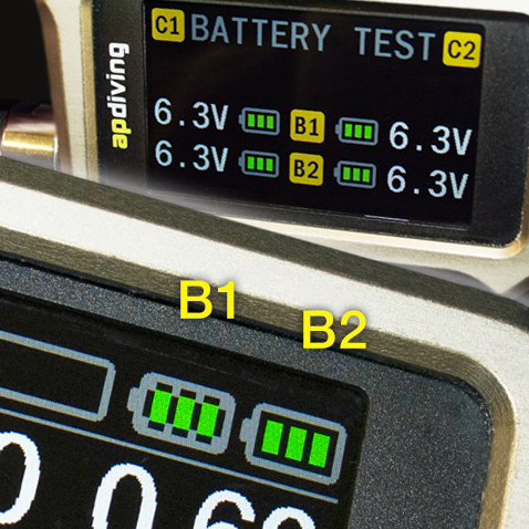 Comprend deux sources déparées d'alimentation – B1 & B2 – câblées directement aux contrôleurs du recycleur et offrant le double de capacité par rapport aux batteries classiques