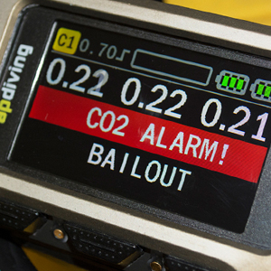 - Le capteur suit en temps-réel le taux de CO2 dans la boucle et prévient le plongeur avant que ce taux ne deviennent dangereux.