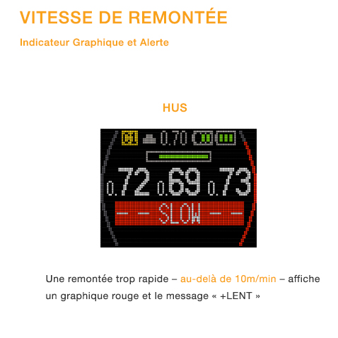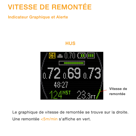 - Le graphique Vert sur la droite indique que la vitesse de remontée est dans les limite tolérées