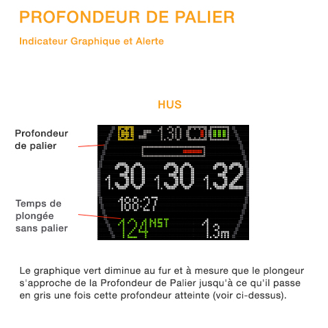 - Une fois la profondeur du palier atteinte, lorsqu'il n'y a plus de palier à effectuer, le graphique vert passe en gris