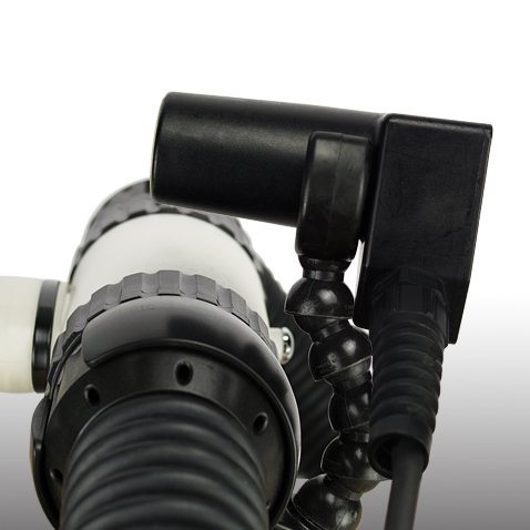 Il est fixé sur l'embout du recycleur avec un support ultra-réglable permettant un positionnement optimal de l'appareil pour une vision parfaite des informations du recycleur sans compromettre la vue de l'environnement extérieur.